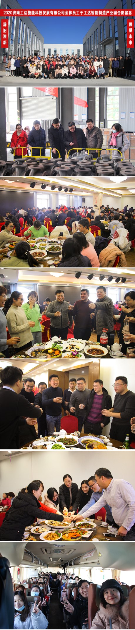 2020年面對嚴峻的疫情防控形勢,公司在各級領(lǐng)導的帶領(lǐng)下,全體工達人上下同心,其利斷金,各項工作有條不絮的全面展開,超額完成了各項業(yè)績指標,贏得客戶的一致認可。為感謝全體員工一年來的辛勞和付出,增強員工凝聚力和歸屬感,讓員工在緊張的工作之余放松身心,同時讓大家了解企業(yè)的發(fā)展,激發(fā)員工的工作積極性和自豪感,濟南工達捷能科技發(fā)展有限公司各部門各團隊所有成員于12月31日乘坐大巴從濟南總部出發(fā),前往工達智能制造產(chǎn)業(yè)園參觀,并與濟陽湖上漁村飯店展開年終員工答謝宴。